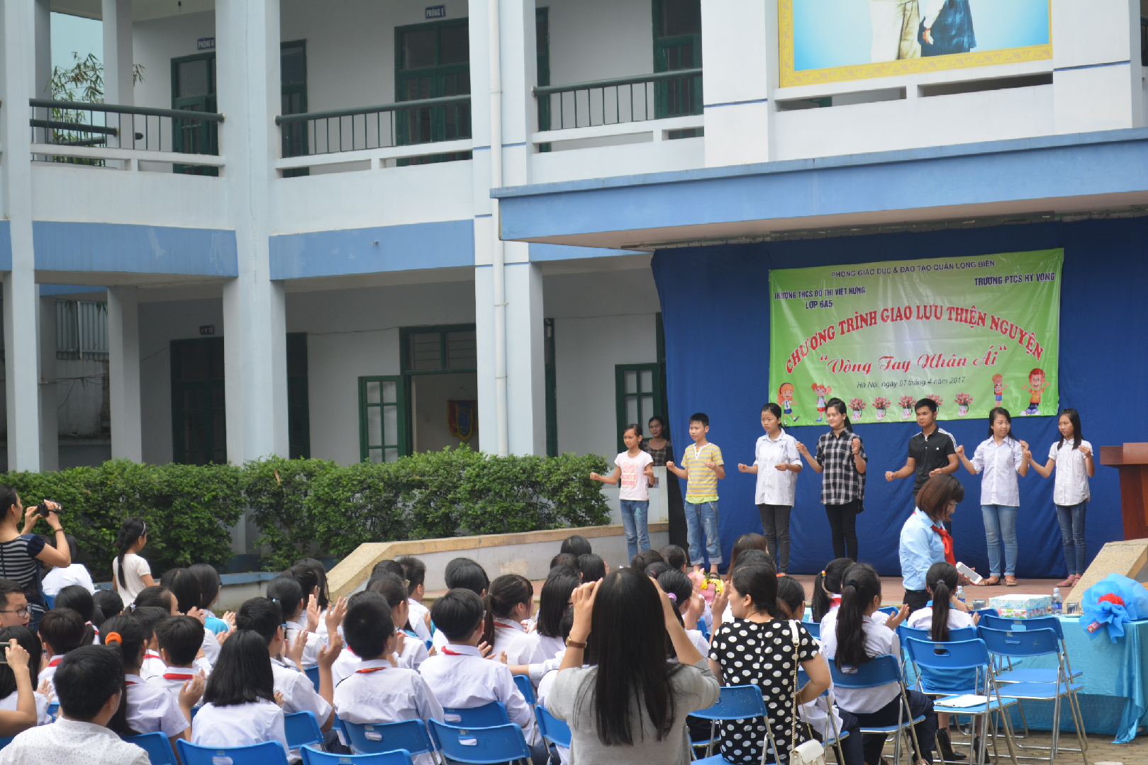 Chiều ngày 07/4/2017 tại trường PTCS Hy Vọng đã diễn ra hoạt động giao lưu giữa học sinh lớp 6A5 trường THCS Đô thị Việt Hưng, học sinh trong Ban chỉ huy Liên Đội trường Tiểu học Đô thị Sài Đồng và học sinh trường PTCS Hy Vọng. Về dự buổi giao lưu đầy ý nghĩa này có cô Nguyễn Thị Kim Thúy – Hiệu trưởng trường THCS đô thị Việt Hưng, cô Hà Thị Diệu Thúy – Phó hiệu trưởng trường TH đô thị Sài Đồng cùng đông đảo các anh chị phụ trách, các bậc phụ huynh và các em học sinh của 3 nhà trường.