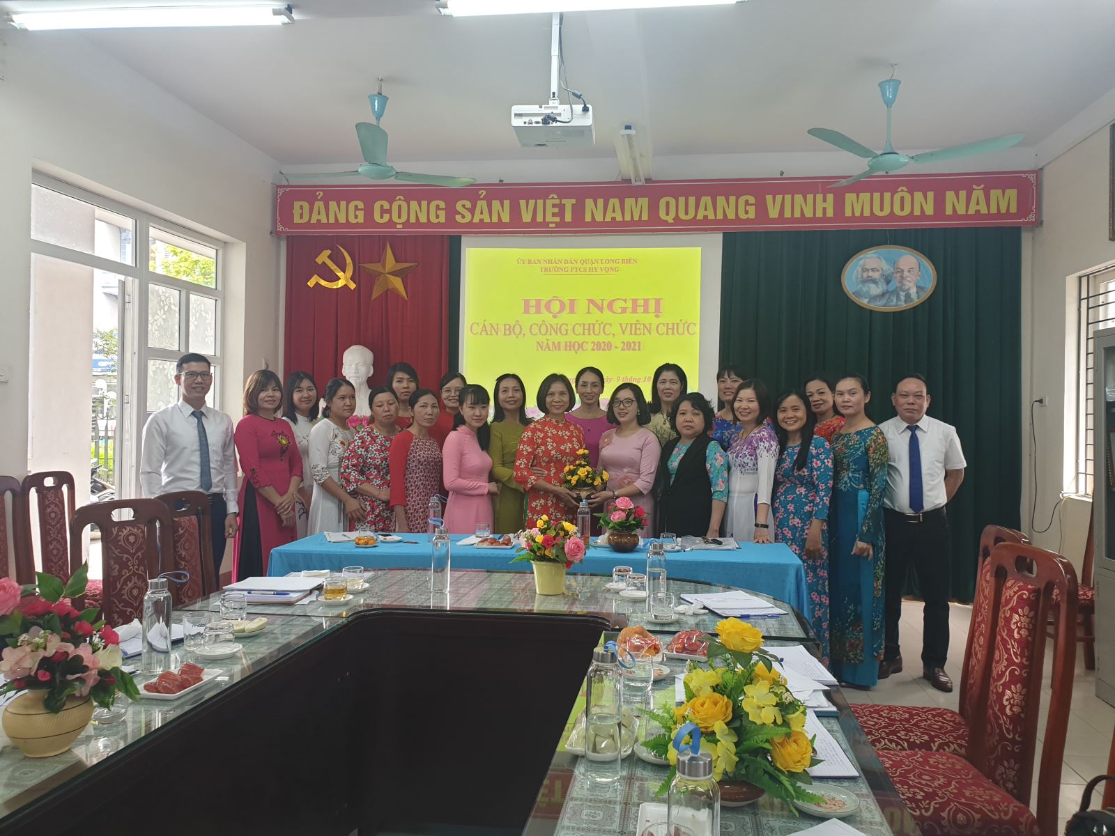 !important; Thực hiện Hướng dẫn số 06/HD-LĐLĐ ngày 25/8/2020 của Liên đoàn Lao động quận Long Biên về việc tổ chức Hội nghị Cán bộ, công chức, viên chức và Hội nghị người lao động khối trường học năm học 2020 – 2021. Đúng 8h ngày 9/10/2020, nhà trường và Công đoàn trường PTCS Hy Vọng đã tổ chức Hội nghị cán bộ, công chức, viên chức năm học 2020 – 2021 nhằm đánh giá những kết quả đã đạt được trong năm học 2019 - 2020 đồng thời đề ra phương hướng và kế hoạch thực hiện nhiệm vụ năm học 2020 – 2021